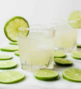 Optionally, rim half of the glass with salt or Tajin before pouring.