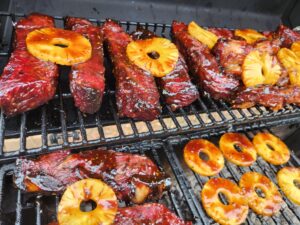 Preheat the smoker to 290F. While you wait, you can start the BBQ sauce on the stovetop. Once the ribs are on the smoker, finish the BBQ sauce. You’ll need that for step 2 of the smoking.
